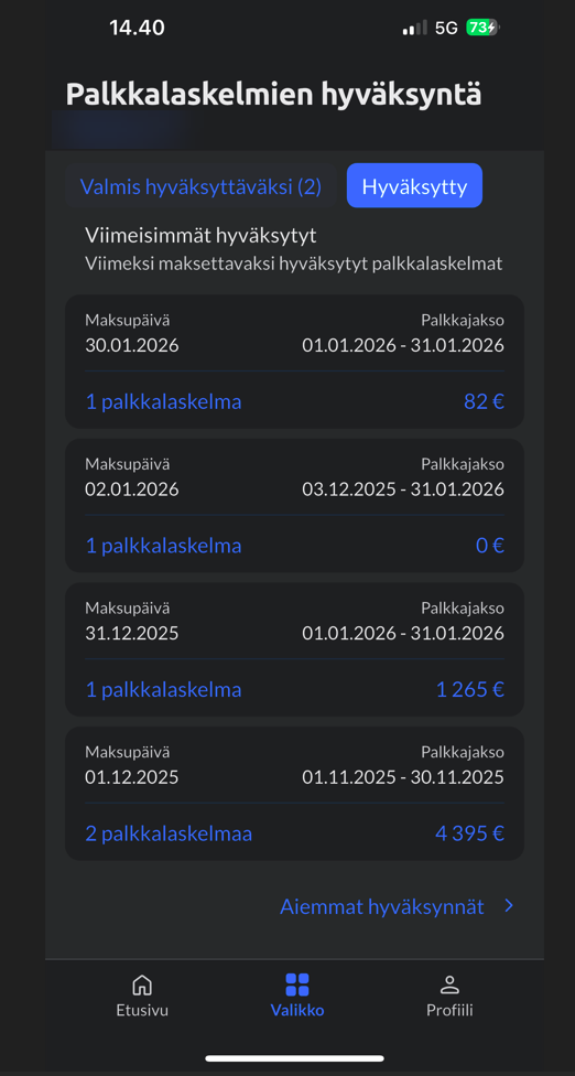 - Palkkalaskelmien hyväksyntä