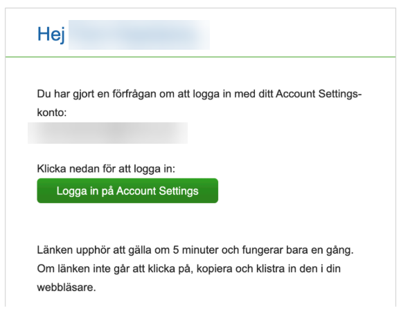 - När du har fått e-posten, klicka på den gröna länken "Logga in på Account Settings" för att logga in automatiskt.