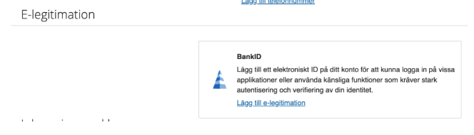 - Leta upp sektionen "E-legitimation" i tjänsten Account Settings.